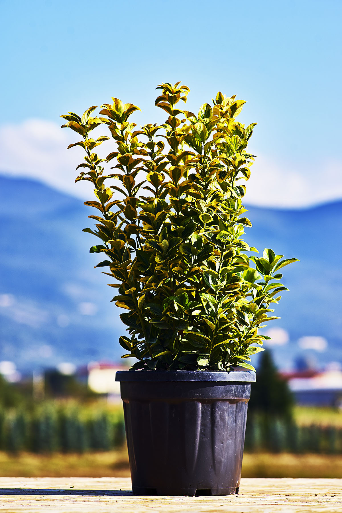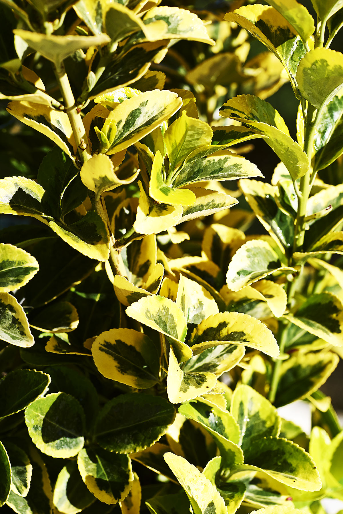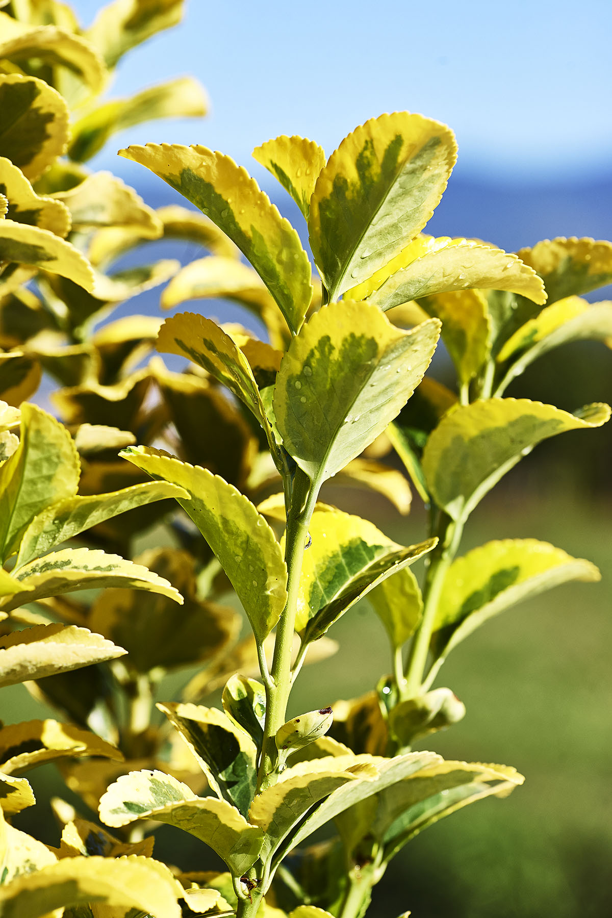 Le foglie sono ovali, appuntite, finemente dentellate, verdi al centro con margini giallo-oro. I fiori sbocciano a giugno-luglio e sono poco appariscenti di colore giallo-verde. Molto resistente al clima marino, sopporta bene le potature ed è molto impiegato nelle località marittime Foglie: Verde al centro e giallo sui bordi Clima: Temperato Temperatura Minima: -15/-20 °C