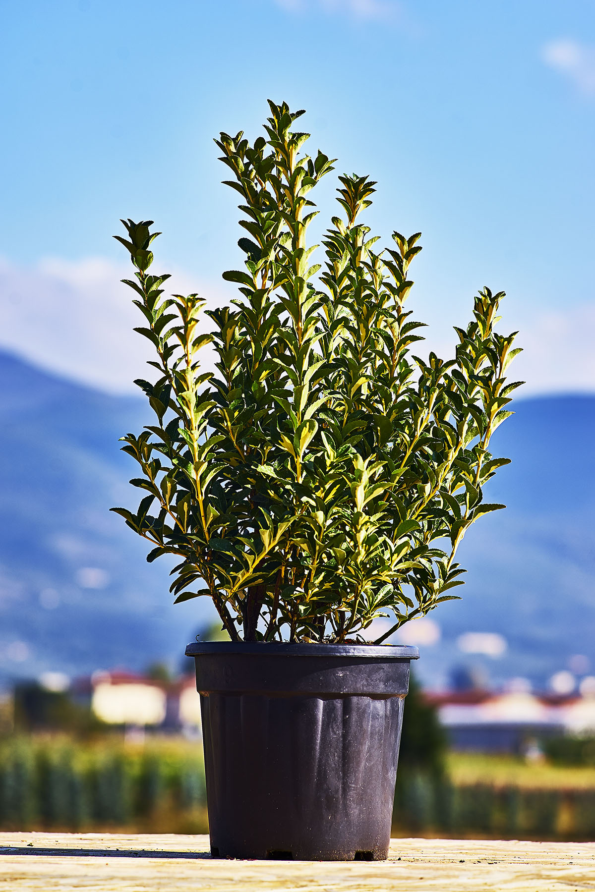 Le foglie di questo arbusto sono ovali, dentellate di colore giallo intenso e verde brillante sui bordi. Sopporta bene le potature ed è molto impiegato nelle località marittime , ideale per piccole siepi e fioriere. Foglie:Giallo al centro verde sui bordi Clima: Temperato Temperatura Minima: -15/-20 °C