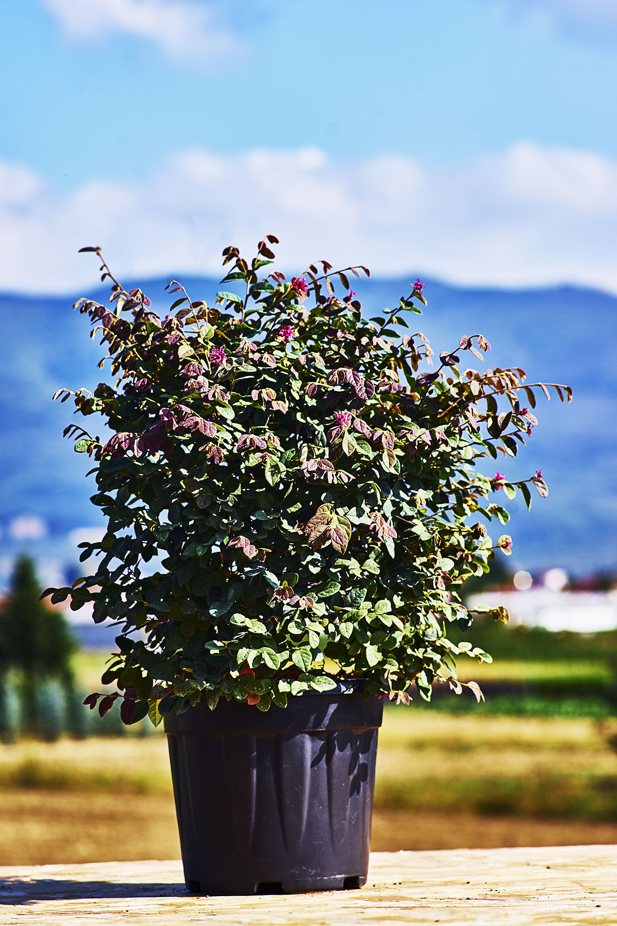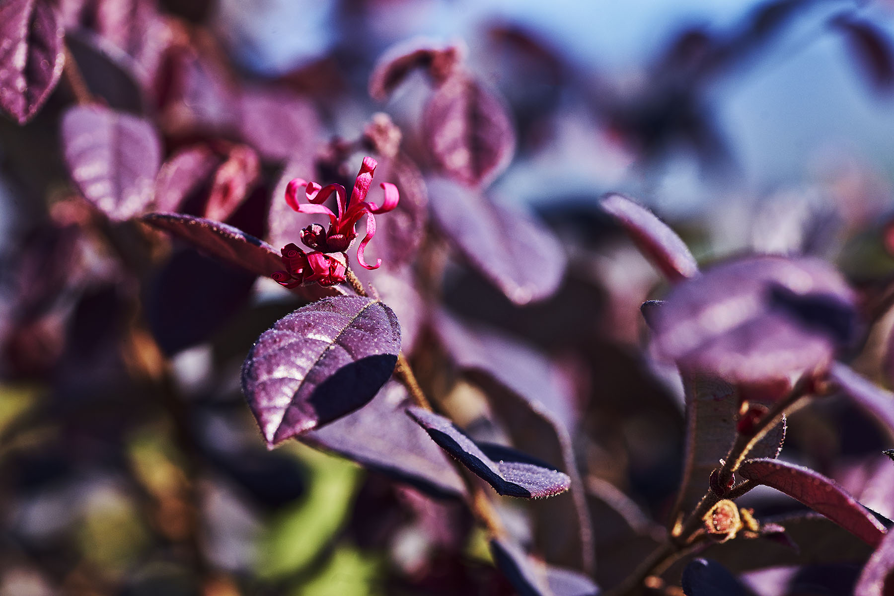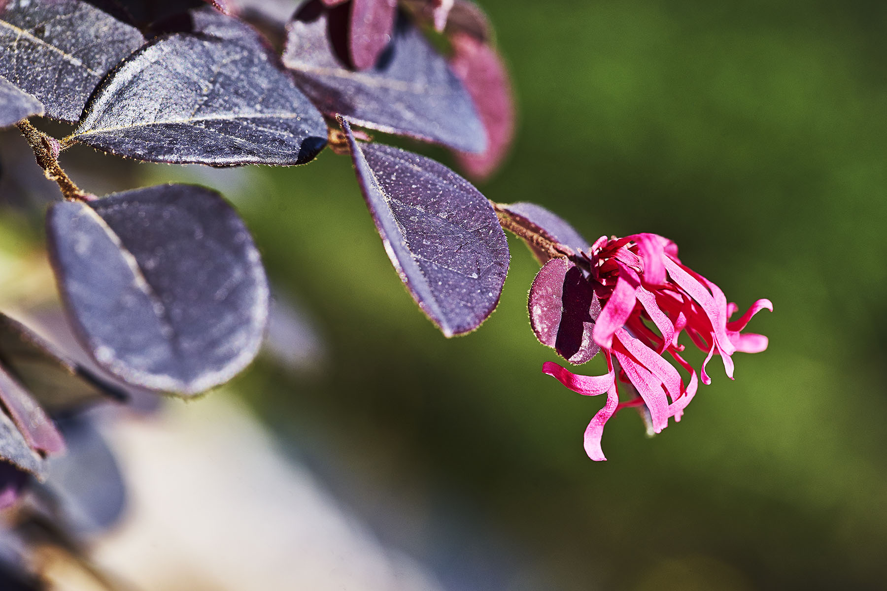 Arbusto dalla chioma ricadente e formata da rami sottili e arcuati. Foglie sempreverdi di porpora per tutto l'anno, fiori terminali fucsia formati da petali attorcigliati e a nastro, da primavera a metà estate. Viene impiegato nelle bordure e fioriere. Foglie: Porpora Clima: Temperato Temperatura Minima: 0 °C