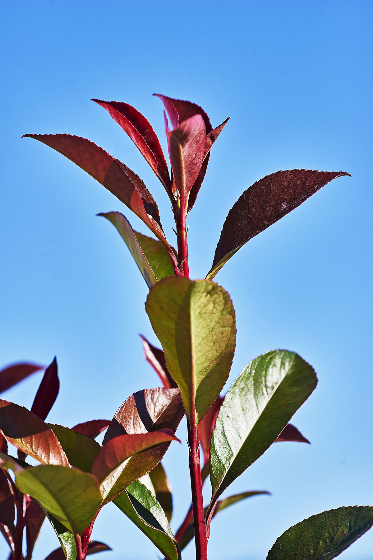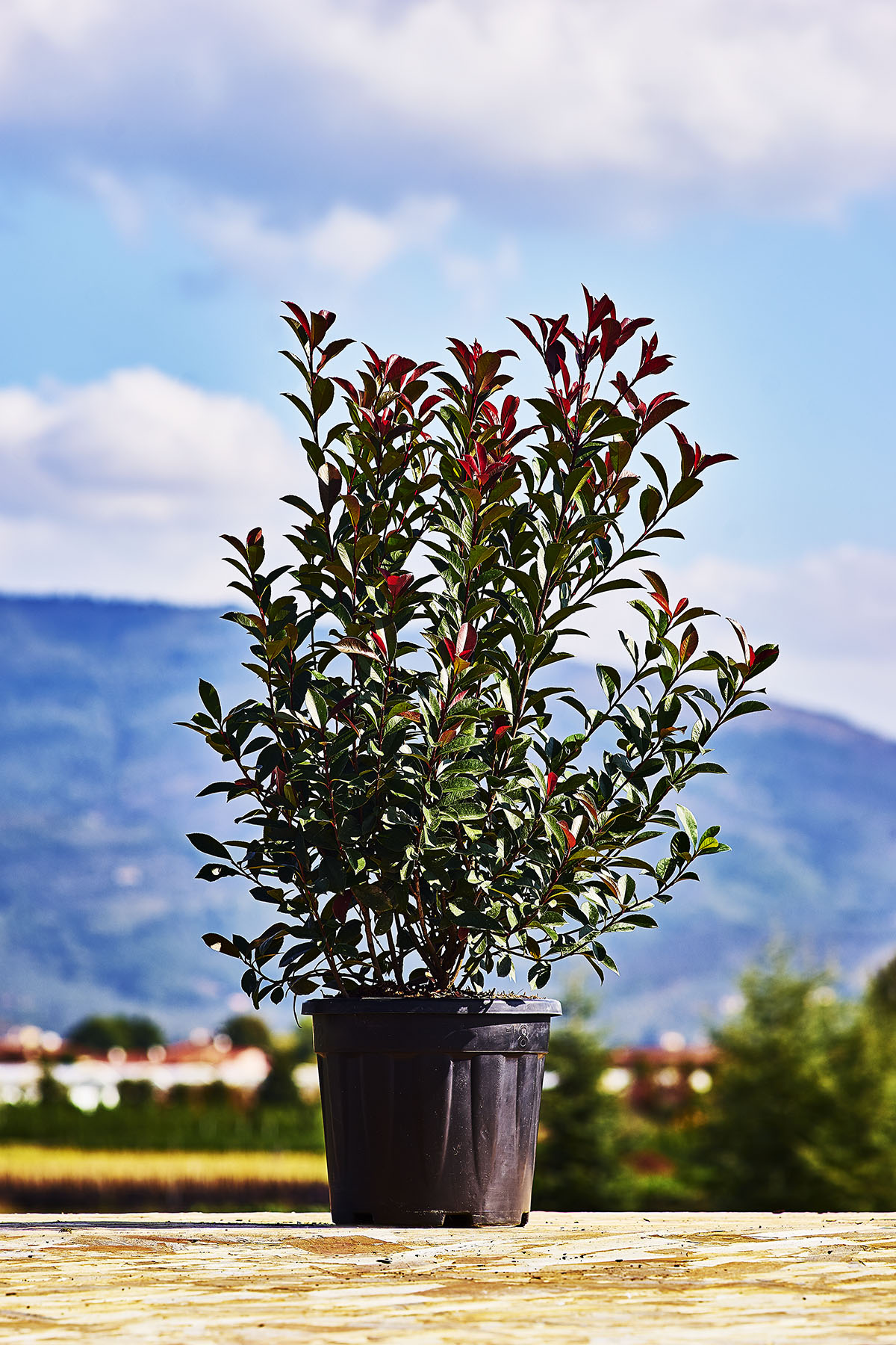 Variazione della Photinia x fraserei "Red Robin", a portamento eretto, molto compatto e a sviluppo più contenuto. Le foglie più piccole, dense, ravvicinate, nascono di un rosso sangue lucente, tonalità che si attenua d'estate per poi tornare rosso vivo in autunno. Foglie: Verde scuro Clima: Temperato Temperatura Minima: -15 °C